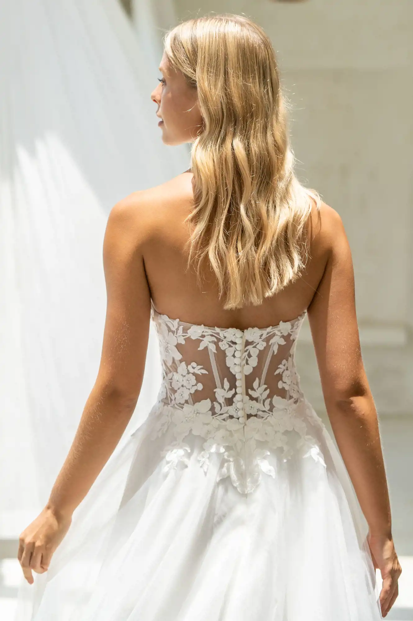 Deze jurk is perfect voor een romantische bruiloft in elke setting — van een intieme tuinbruiloft tot een stijlvolle ceremonie in een kasteel.