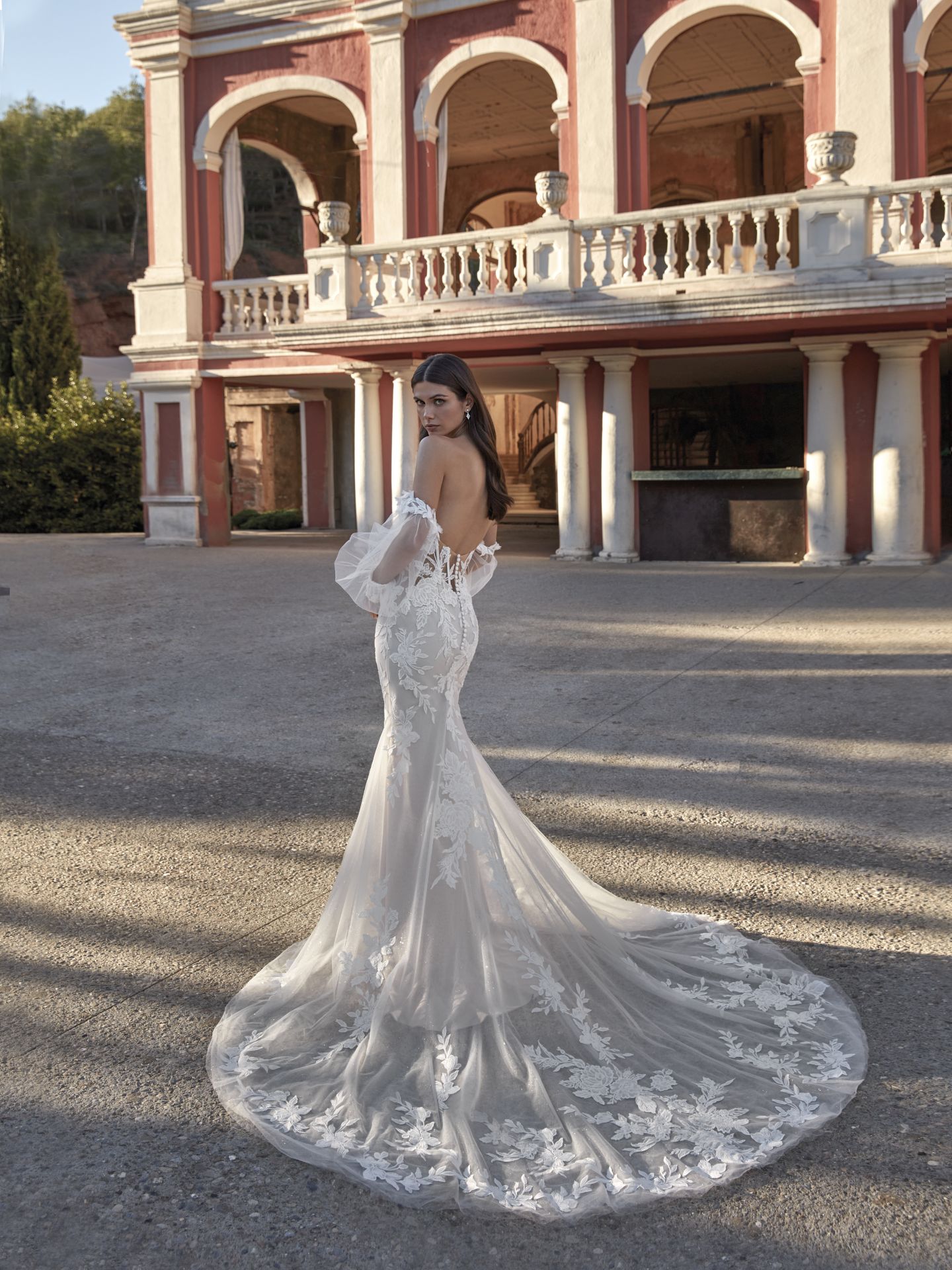 Ervaar de magie van kant met deze verfijnde all-over lace bruidsjurk, Amélie de Luxe 15008