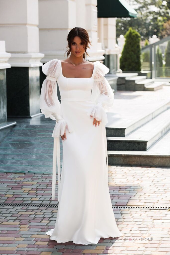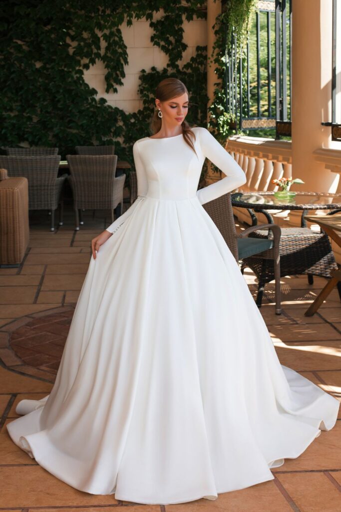 Of je nu een winterbruiloft plant of kiest voor een ceremonie in een koele kerk, lange mouwen zorgen voor een elegante en ingetogen uitstraling.